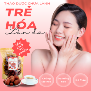 Trong táo đỏ Hoàng Kim có chứa nhiều dưỡng chất như vitamin C, chất chống oxy hóa, giúp bảo vệ làn da khỏi tác động của các gốc tự do, làm chậm quá trình lão hoá da. Vitamin C có trong táo đỏ giúp tăng cường sản xuất collagen tự nhiên hoặc hấp thu collagen tốt hơn khi bổ sung thêm từ bên ngoài, giữ cho làn da căng mịn, giảm thiểu nếp nhăn và duy trì độ đàn hồi của da. Ngoài ra táo đỏ Hoàng Kim còn chứa các loại saponin – thành phần có khả năng hỗ trợ lưu thông khí huyết và tăng cường chức năng hệ tuần hoàn.