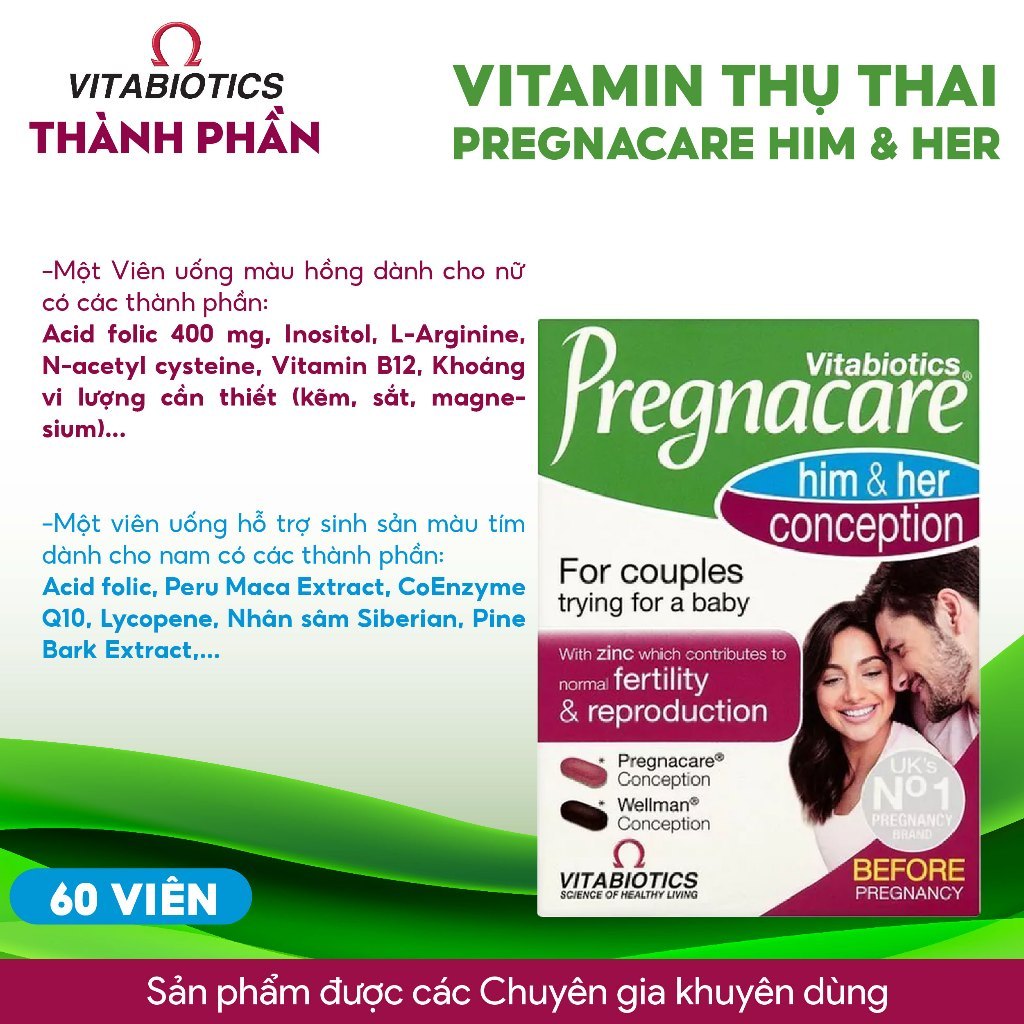 Vitabiotics Viên uống hỗ trợ tăng khả năng thụ thai Pregnacare Him & Her Conception – Hộp 60 viên