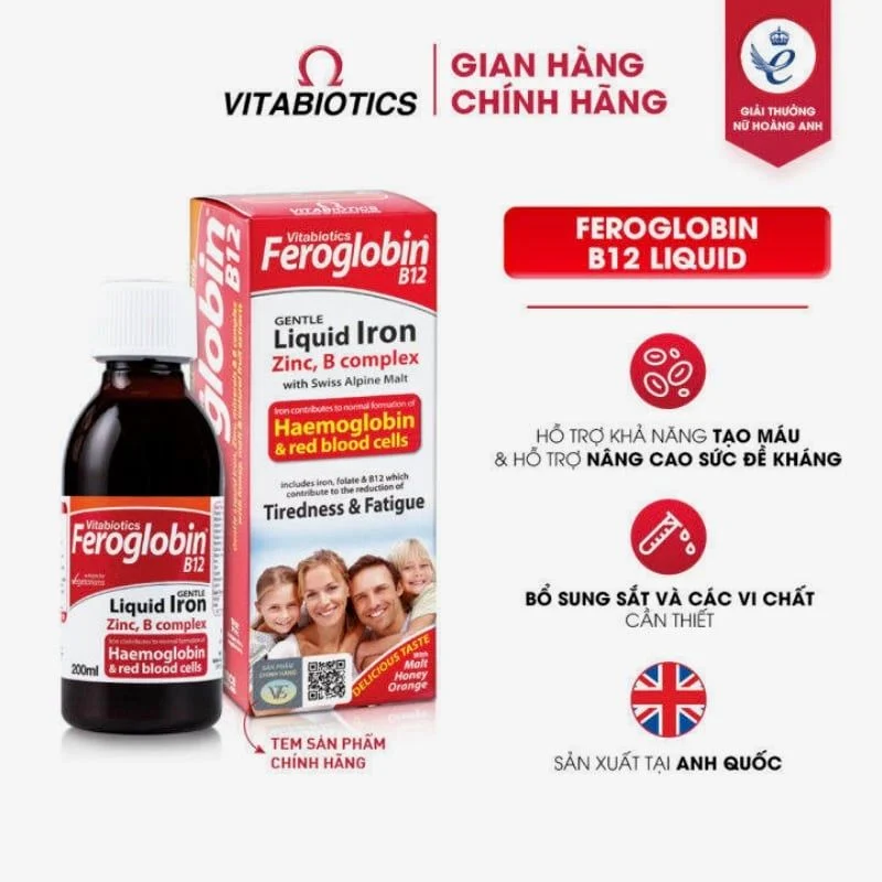 Feroglobin Liquid Siro Sắt&B12 Trẻ Em Vitabiotics – Chai 200ml