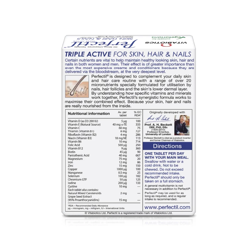 - Perfectil Triple Active Skin Hair Nails là vitamin làm đẹp duy nhất trên thế giới đã nhận được Giải thưởng Sáng tạo của Nữ hoàng