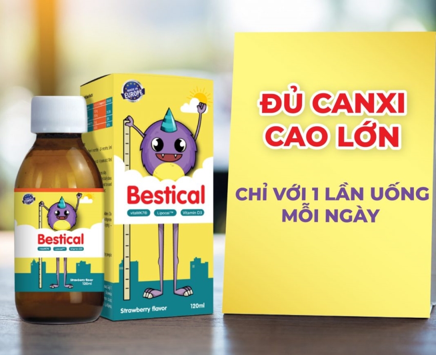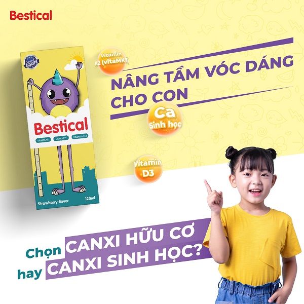 Dung dịch Bestical là một sản phẩm được bào chế để giúp hỗ trợ sự phát triển của xương và răng cho trẻ em. Dung dịch này bổ sung canxi, vitamin D3 và vitamin K2 – các chất dinh dưỡng quan trọng cho sức khỏe của trẻ.