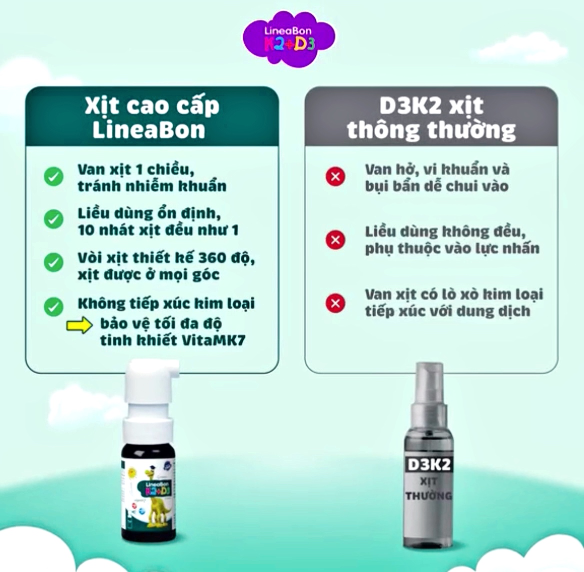 Vitamin D3 K2 chai xịt LineaBon 10ml (xanh)
