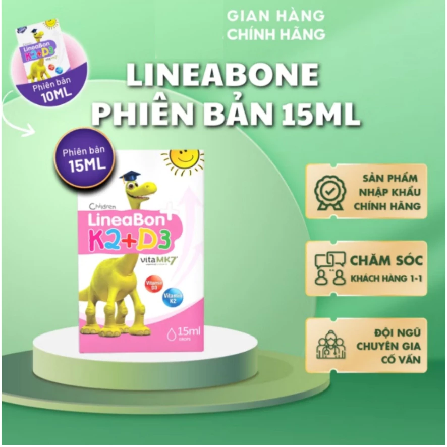 Vitamin D3K2 LineaBon Plus 15ml chính hãng mang đến sự kết hợp ưu việt giữa D3 và K2 (MK7) là bộ đôi vi chất giúp trẻ tăng chiều cao tối đa nhờ tác động kép: